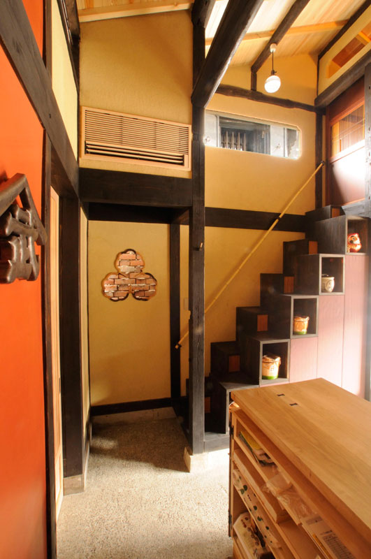 中国黄土 赤いのは大津磨き大津磨きの真ん中にお店の看板